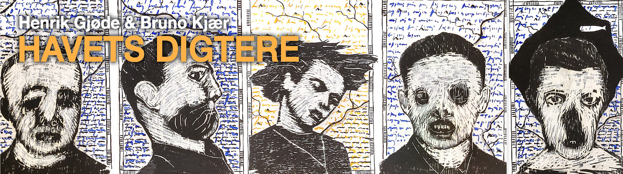Havets digtere; udstilling og bog er blevet til i et samarbejde mellem Henrik Gjøde (poesi) og Bruno Kjær (grafik). Udgangspunktet har været en række portrætter som Bruno Kjær har skåret som træsnit, og som Henrik Gjøde derefter har sat ord til. Der opstod en dialog der gjorde, at de havdruknede kom til orde.
