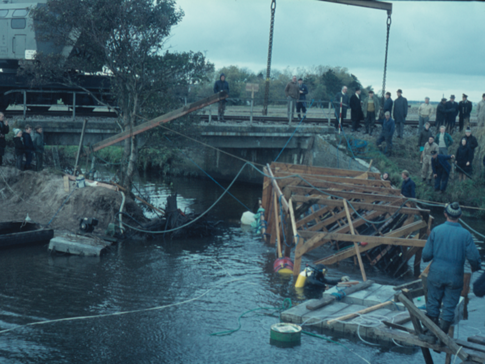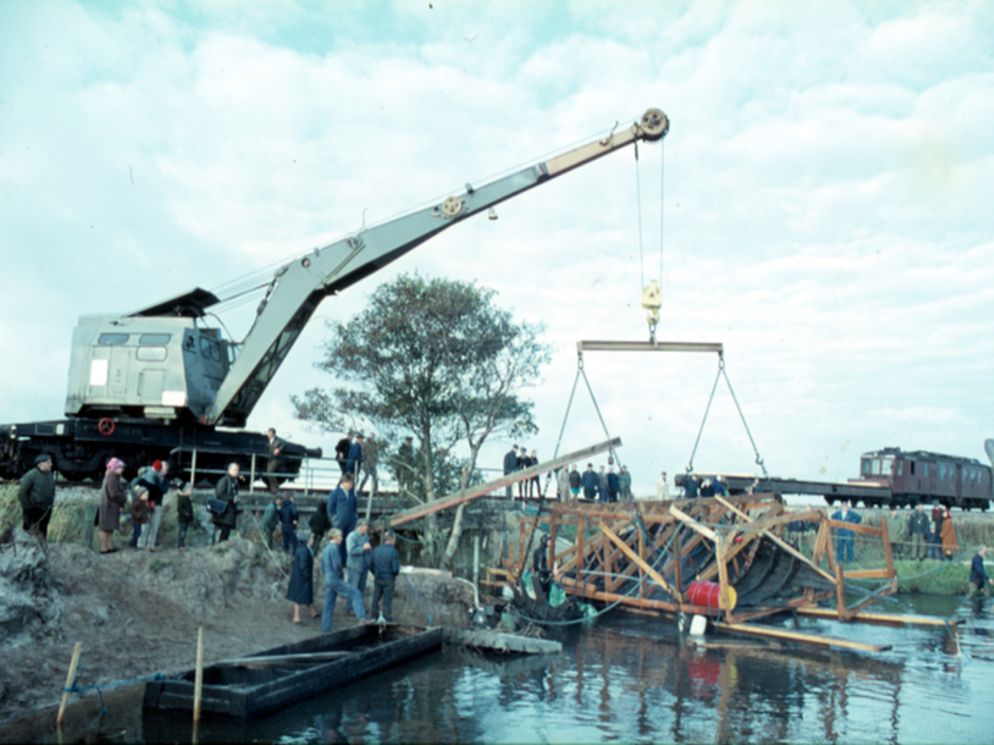 Aber zuerst musste das Schiff wiedergefunden werden. Das stellte sich als größere Herausforderung heraus als erwartet. Bei der ersten Probeuntersuchung wurde kein Schiff gefunden. Denn es lag in Wirklichkeit auf der anderen Seite des Flusses, was man entdeckte, als man die Aufzeichnungen der ersten Ausgrabung durchsuchte. Die richtige Position des Schiffes wurde 1963 gefunden und bestätigt. Nachdem die Mittel aufgebracht und der Standort des Schiffes festgelegt waren, konnte der Transport aus dem Flüsschen Elling Å geplant werden. Das Ellingå-Schiff wurde 1968 mit Hilfe eines Krans auf der Eisenbahnbrücke aus dem Fluss gehoben.