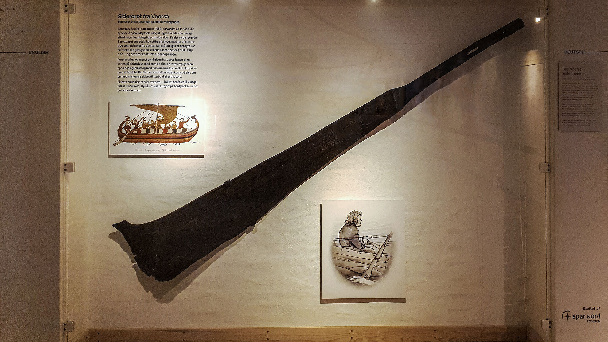 Dieses einzigartige Ruder zeugt vom Leben an der Ostküste Nordjütlands bereits in der Wikingerzeit. Es erzählt auch von beeindruckender Ingenieurskunst und stellt Bezüge zum weltberühmten Wandteppich von Bayeux her. Jetzt wurde die Ausstellung des Ruders mit Hilfe der Stiftung Spar Nord aktualisiert